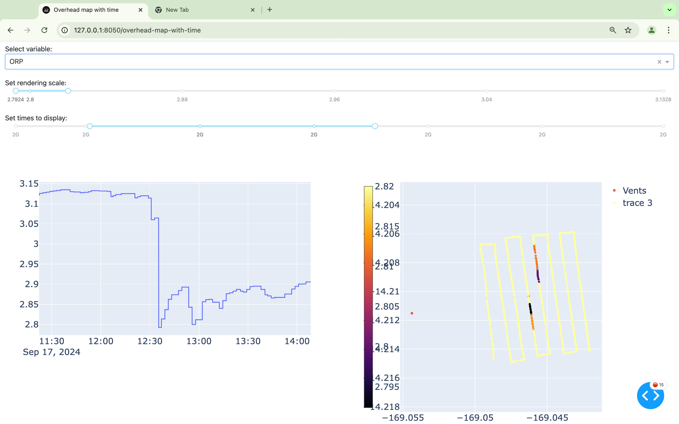 To streamline the process of locating seafloor fluid flow sites such as hydrothermal vents and cold seeps, this research team is developing a fully autonomous algorithm to enable autonomous underwater vehicles (AUVs) to trace biogeochemistry signatures in the water column that are indicative of vents and seeps using real-time data recorded by onboard sensors, independent of human operators. In September 2024, during a NOAA Ocean Exploration Cooperative Institute expedition on Ocean Exploration Trust’s Exploration Vessel Nautilus, they tested a prototype of their plume-tracing algorithm during two AUV Sentry dives at Vailulu’u Seamount in National Marine Sanctuary of American Samoa.